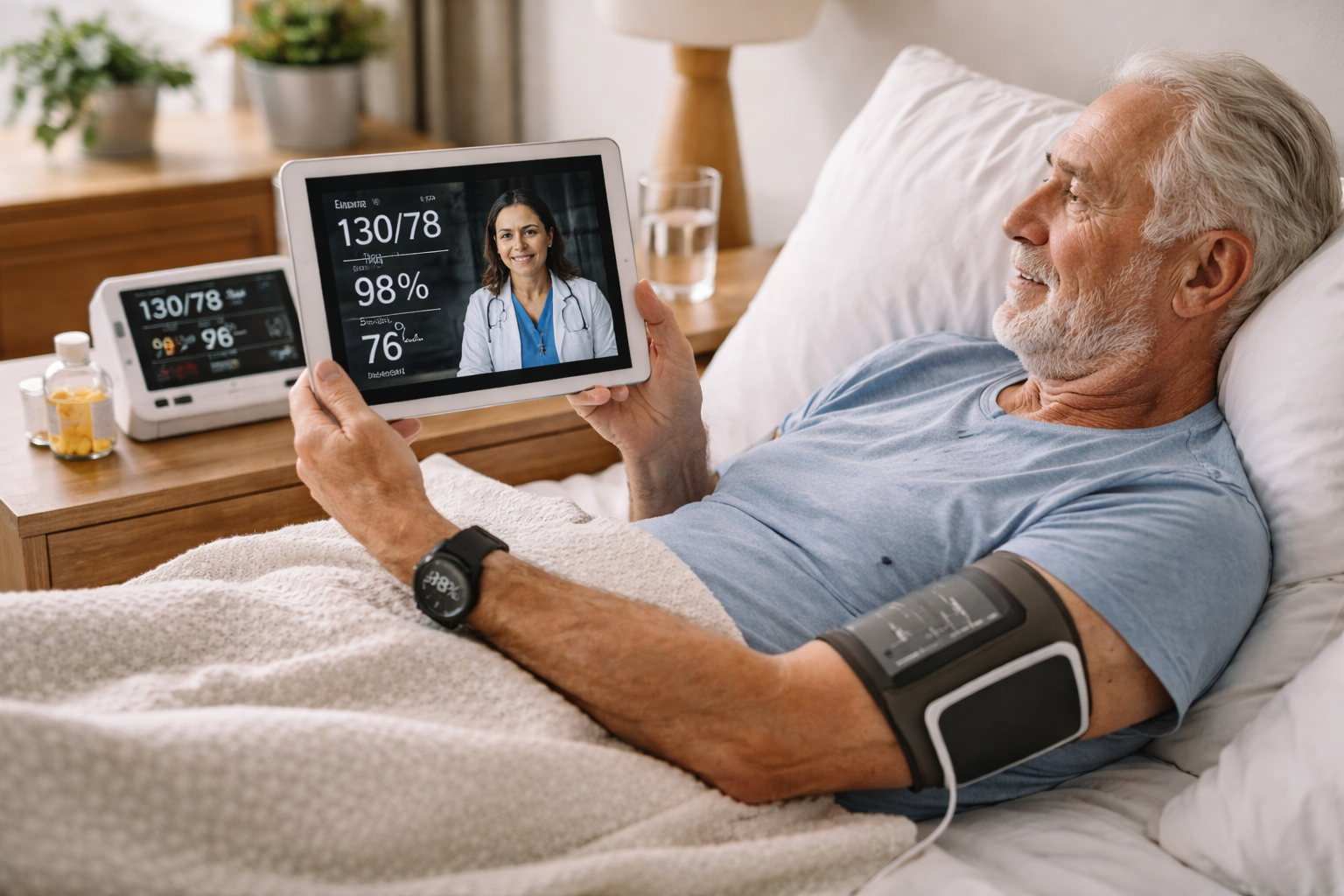 Los programas de Hospital-at-Home suelen apoyarse en dispositivos de monitoreo remoto y canales digitales para compartir datos y coordinar atención. (CNIB)